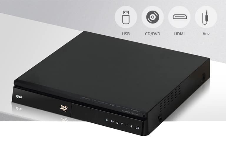 In the box: DVD player, two speaker, remote control, a battery, aux input cable, FM antenna cable, HDMI cable, user manual, warranty card.
